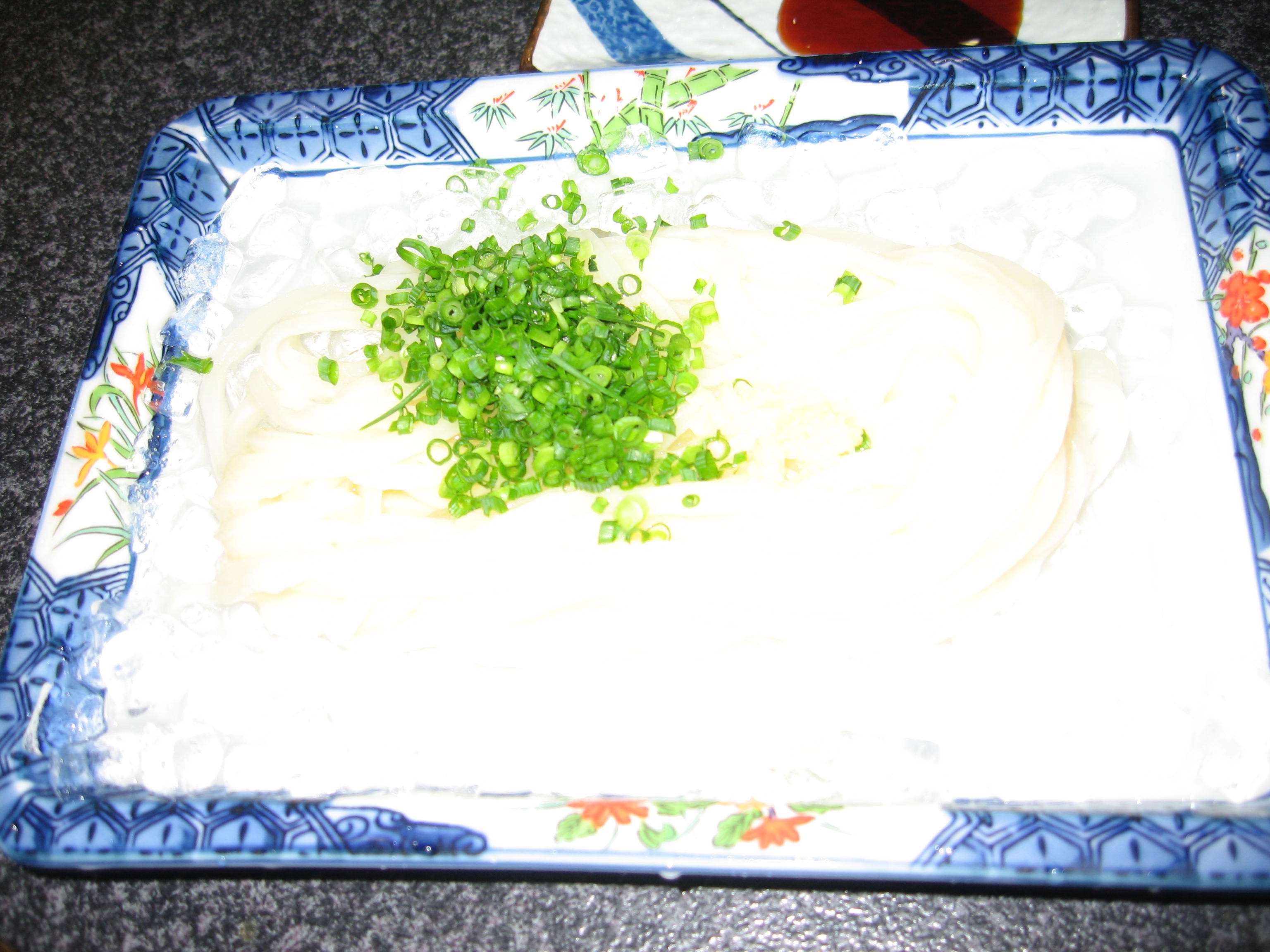 一枚目は さしみうどん。香川大学から車で10分の距離にある、この旅一番高価なうどんでした。