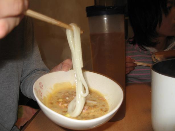 まずはうどんをゆがく。うどんは乾麺がお勧めだ。乾麺のうどんはけっこうゆがくのに時間がかかるので、その間に納豆をこねる。とんでもないにおいになっているが家族4人分で6パック。こりゃ明日の朝が怖いな。納豆とうどん好きな次女は奇跡の食べ物を見ている様子。長女は「納豆嫌い」といつものわがままモード。奥さんは、ご飯を作っている私に感涙している。