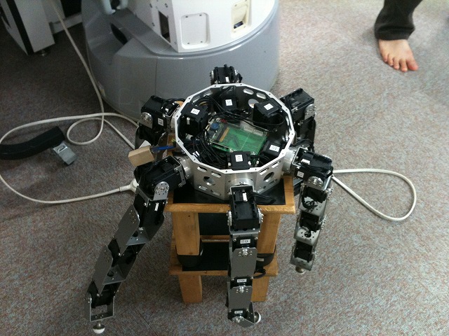 このロボットに学習プログラムをSetすることで、人間がどのように発達していくのかのプロセスと比較するらしい。稼動域のモータ出力が成長に応じて強くなるなどの工夫をすればもっと面白そうだ。